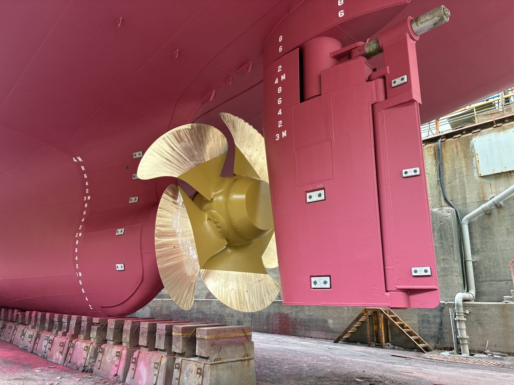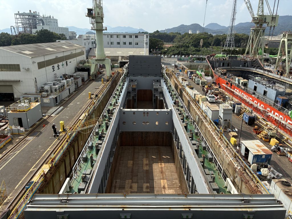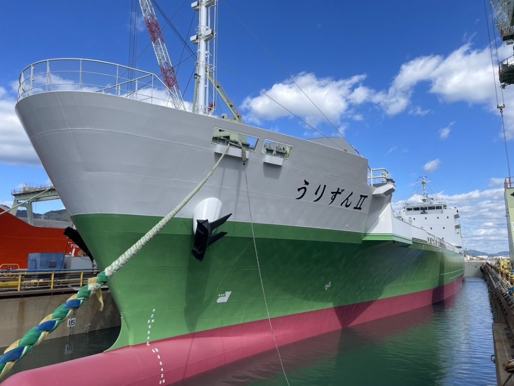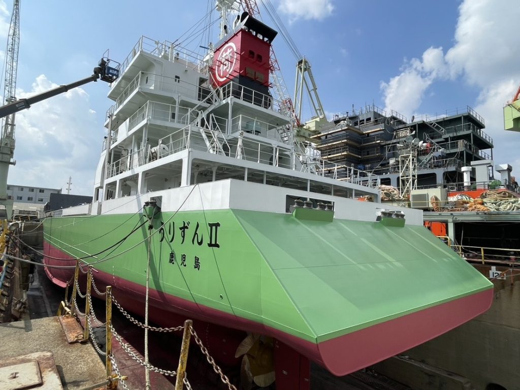 貨物船「うりずんⅡ」は、令和7年10月21日から10月28日までの期間、年次検査のため旭洋造船株式会社様に入渠いたしました。今回の検査では、船体および機関の点検・補修を実施するとともに、乗組員との安全会議を行い、航行中や入出港時における安全確保の重要ポイントを改めて確認いたしました。今後も、安全で確実な運航を維持するため、万全の体制で取り組んでまいります。